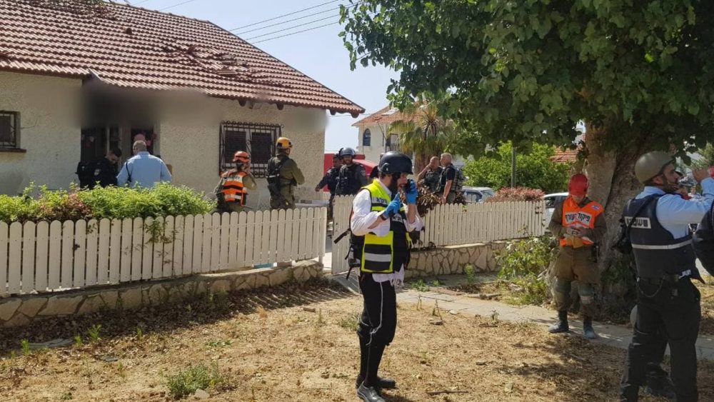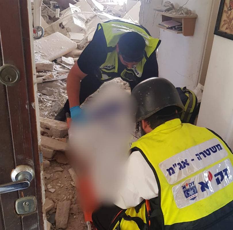 Una casa impac­ta­da por un misil en la ciu­dad de Ash­ke­lon, al sur de Israel. Fuen­te: Zaka.