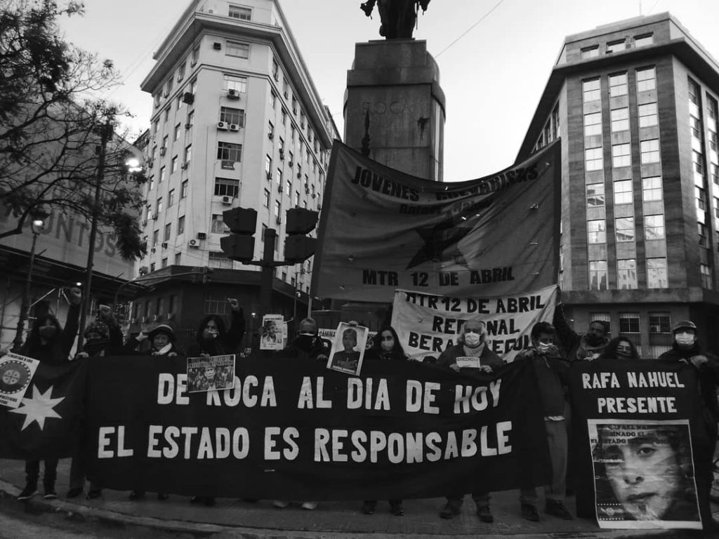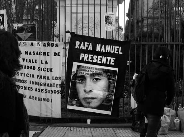Acto a 43 meses del asesinato del Weichafe Rafael Nahuel Yem en manos del estado. El plan sistemático de ecocidio, saqueo y muerte es común a todos los gobiernos….» Empezamos a bajar del monte y escuchamos de nuevo: ¡Maten a un indio de una vez! Y de nuevo una ráfaga ta,ta,ta,ta. Las balas daban en los árboles, se veía como saltaban las astillas. Ahí un peñi grita: le dieron a uno! ¿A quien??! El Rafa estaba guardando su mate recién y le gritamos «! Rafa escondete! Apenas Rafa se agacha y se da vuelta, cae. Un tiro de fusil. Voló. El tiro vino de tan cerca que voló. ¡Un tiro, me dieron! Siento que me estoy muriendo». Tranquilo Peñi, te vamos a bajar. No, déjame acá, en esta tierra. Yo vine a pelear por este territorio, por nuestro pueblo, por nosotros, por ustedes, por ellos, por nuestro ser mapuche», dijo en voz alta. Después nos llamó uno por uno y nos dijo unas palabras en voz baja. No las podemos decir.