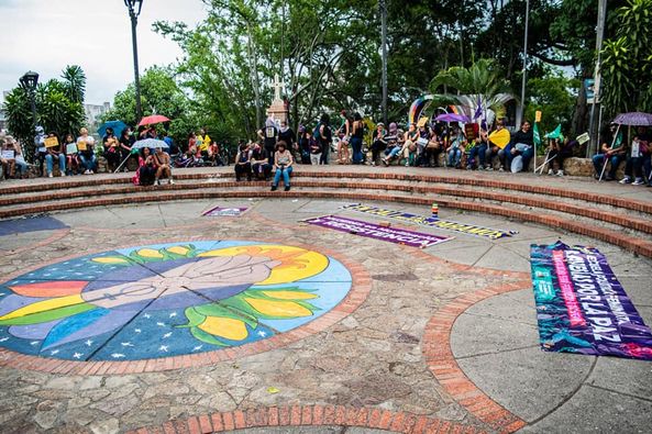 #31M en la rotonda de la Loma de la Dignidad se encontraron diversas mujeres en la inauguración del Punto Lila, con poesía, cantos, palabras, canelazo y un abrazo de luz y contención para sanar, aliviar y recordar que no estamos solas, que somos muchas en el camino de transformar este país en el país soñado.