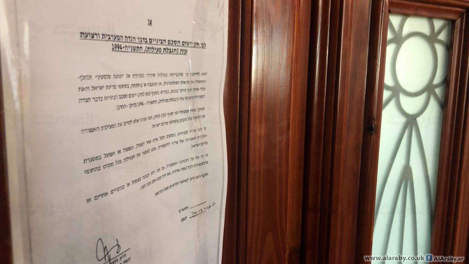 Foto acceso de las oficinas de la TV palestina en Jerusalen ocupada con el decreto israelí del cierre