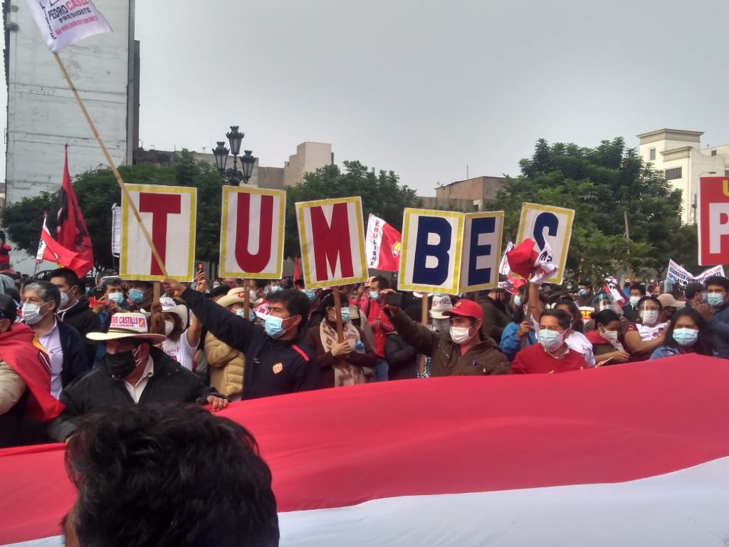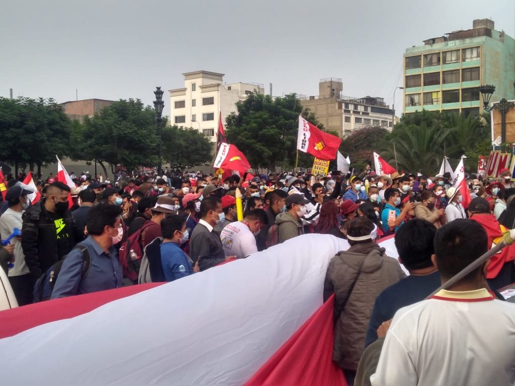 Perú. Miles de mani­fes­tan­tes y ron­de­ros mar­cha­ron en Lima exi­gien­do el reco­no­ci­mien­to del triun­fo de Pedro Cas­ti­llo (video)