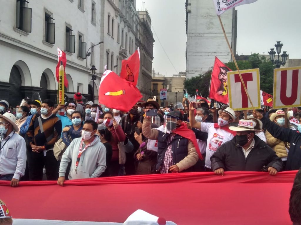 Perú. Miles de manifestantes y ronderos marcharon en Lima exigiendo el reconocimiento del triunfo de Pedro Castillo (video)
