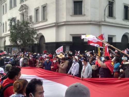 Perú. Miles de mani­fes­tan­tes y ron­de­ros mar­cha­ron en Lima exi­gien­do el reco­no­ci­mien­to del triun­fo de Pedro Cas­ti­llo (video)