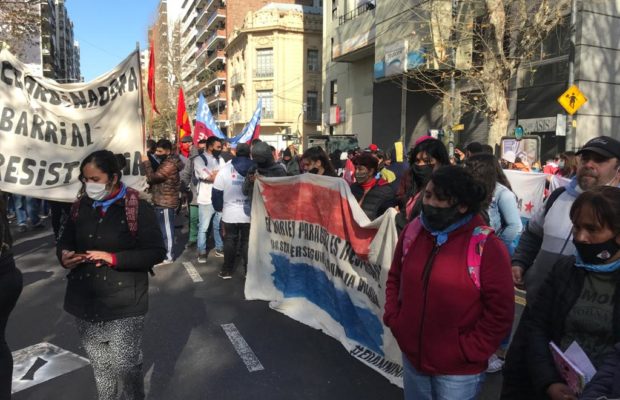 En el marco de gran presencia policial y una embajada totalmente vallado, hablaron varios oradores y oradoras de las organizaciones convocantes y cerraron, Miriam Vasall, madre de un joven fusilado por la policía, Leo Santillán (hermano de Darío, asesinado en la masacre de Puente Puerredón junto a Maxi Kosteki) y Miriam Villalba, madre de una de las niñas asesinadas y hermana de Cármen y Laura. Todos insistieron en la importancia de movilizarse para visivilizar una situación que no debe quedar en la impunidad, y dieron cuenta que 2 de septiembre, cuando se cumpla un año del asesinato por parte del ejército paraguayo de Lilian Mariana y María Cármen , «hay que multplicar por diez nuestra presencia frente a esta embajada».
