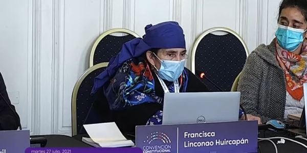 Francisca Linconao se presentó ante sus colegas de la comisión de DD.HH. de la Convención. Dijo venir por la tierra y por el agua.