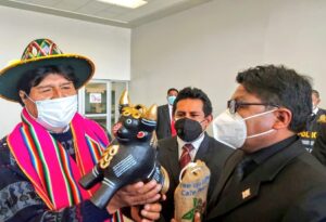 En la red social Twitter, Morales agradeció también a los pobladores de la frontera que lo recibieron en Perú con saludos y regalos. «Listos, vamos rumbo a la posesión del hermano Pedro Castillo», escribió.