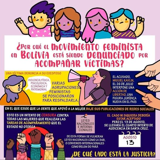 ‼️ Esto es un atentado de CENSURA contra las personas que contienen y acompañan los casos de violencia. Bolivia es uno de los países de la región con mayor índice de violencia por que por más leyes nacionales en internacionales que existan a favor de las mujeres, las autoridades a cargo de la justicia no ven los casos con perspectiva de género revictimizando constantemente y esta vez, de manera inaudita, al aceptar esta «acción de libertad» se quiere además quitar el apoyo que las víctimas reciben.