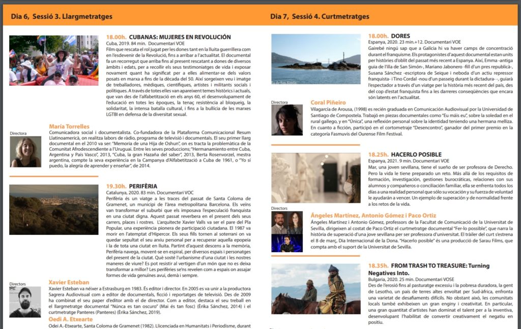 El FESTIVAL Gollut, 2021 tendrá como un primer objetivo recuperar la normalidad perdida a causa de la pandemia, recobrarla plena asistencia del público a un concurso de largos y cortometrajes siempre desde una perspectiva marcada por unas obras de carácter de denuncia social y /o medioambiental. Esta edición tendrá un sustrato de homenaje a las salas de cine, en especial en el cine Cataluña, a los profesionales y entidades que contra todas las circunstancias adversas han mantenido las programaciones, la realización y la producción de filmes y que a su persistencia en debemos estar agradecidos. Esta huella se verá tanto en los filmes proyectados como en el jurado principal, formado por profesionales del cine y reafirmado por el Premio bocio a la Trayectoria Cinematografía y Audiovisual. Tras anteriores ediciones más descentralizadas, la de este año estará ajustada a las proyecciones que se realizarán en el Cine Cataluña, enfocadas a atraer principalmente al público de nuestro pueblo, tanto residentes como visitantes circunstanciales, huyendo de la transmisión o edición de filmes por medios telemáticos o televisivos, por qué no entendemos el cine de otra forma que no sea en una sala de proyecciones como es, donde se cuida con esmero la programación, la calidad dela imagen y el sonido, donde la proyección no es cincelada de forma atroz por cortes de anuncios, donde el silencio no es roto por la familia o los vecinos, un homenaje más a las salas de cine, a todas pero especialmente en las salas centenarias como es el caso del Nuestro Cine Catalunya. Y podemos anunciar que vamos a seguir, cada año intentando hacerlo más y mejor, siempre dentro de la línea de dar a conocer obras de cine comprometido socialmente, de montaña y medio ambiente, que organizamos gracias al voluntariado de los Amigos de lCine del Valle de Ribes y la inestimable colaboración del Ayuntamiento de Ribes de Freser. Os esperamos para disfrutar todos juntos de un Festival seguro y de calidad.