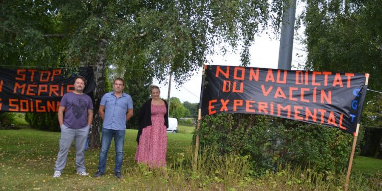 El sindicato CGT des Hôpitaux de Lannemezan ha instalado pancartas en la rotonda del Demi-Lune, a la entrada del centro hospitalario. Le preguntamos a Michel Dabat, el secretario de la CGT, por qué estas pancartas. Para el secretario de la CGT: «Entre el personal del hospital tenemos agentes que han contraído el virus Covid-19 o que han sido asintomáticos, pero que tienen una tasa de inmunidad más alta que un agente que ha recibido las 2 inyecciones de vacuna. No obstante, se les exige una inyección para obtener el «pase sanitario». Con el pretexto de que su inmunidad no durará. La retrospectiva que tenemos sobre esta inmunidad no nos permite saber cuál será el momento de la duración de la inmunidad de un vacunado ya que hoy estamos hablando de hacer una 3ª inyección».