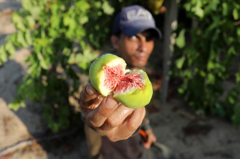 Un pales­tino cose­cha higos en la ciu­dad de Gaza el 28 de julio. Los higos, las uvas y las san­días se encuen­tran entre las fru­tas más popu­la­res duran­te los calu­ro­sos vera­nos de Gaza. Imá­ge­nes de Ash­raf Amra APA
