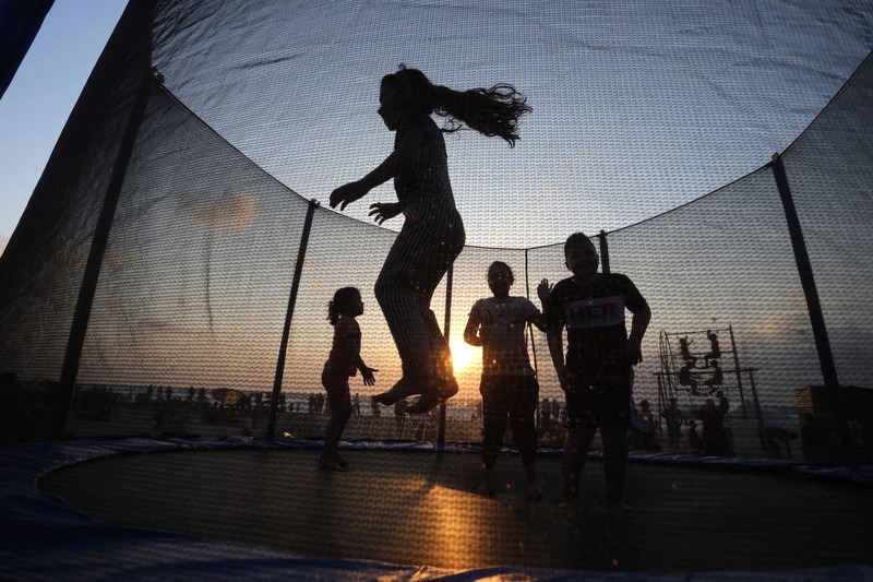 Niños jue­gan en la pla­ya de Deir al-Balah, en el cen­tro de la Fran­ja de Gaza, duran­te Eid al-Adha, el 23 de julio. Imá­ge­nes de Ash­raf Amra APA
