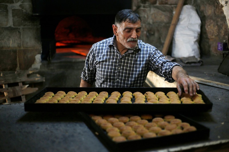 Un ven­de­dor pales­tino pre­pa­ra mini pas­te­les relle­nos de dáti­les tra­di­cio­na­les antes del Eid al-Adha en un mer­ca­do en la ciu­dad cis­jor­da­na de Naplu­sa el 18 de julio. Imá­ge­nes de Sha­di Jarar’ah APA
