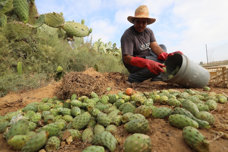 Los pales­ti­nos reco­gen tunas en Khan You­nis, en el sur de Gaza, el 12 de julio. Imá­ge­nes de Ash­raf Amra APA