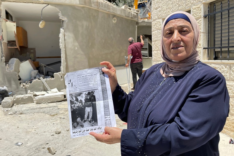 Una inte­gran­te de la fami­lia Abu Ghan­nam se encuen­tra jun­to a los escom­bros de su casa des­pués de que fue­ra demo­li­da en el barrio de al-Tur en Jeru­sa­lén Orien­tal el 6 de julio. La fami­lia demo­lió la casa para evi­tar pagar cos­tos exor­bi­tan­tes si el muni­ci­pio de Jeru­sa­lén cum­plía con las órde­nes de demo­li­ción. Esta es la segun­da vez que se demue­le la casa de Abu Ghan­nam; la pri­me­ra vez fue en 1994. Imá­ge­nes APA