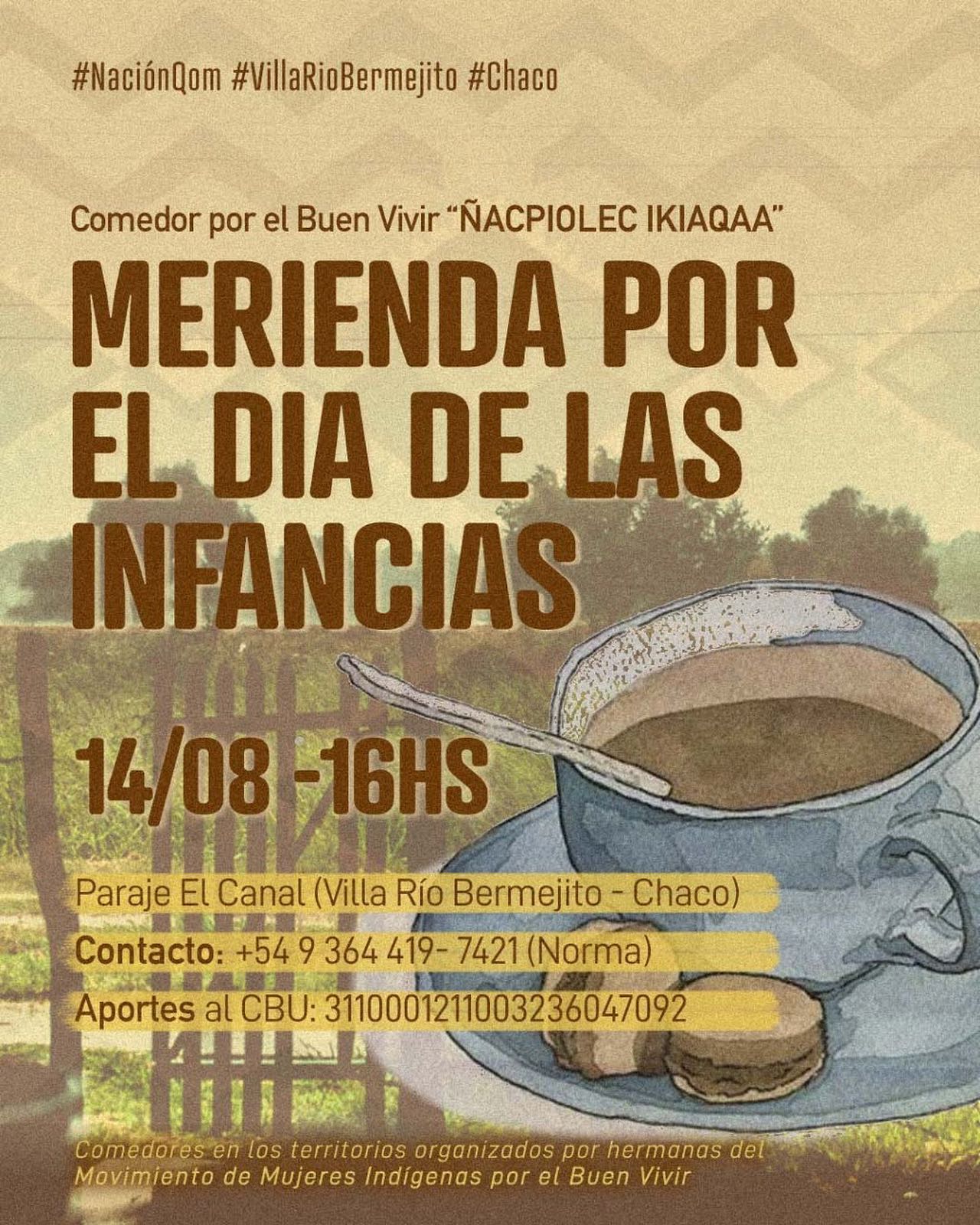 Como todos los demas #ComedoresPlurinacionales, se sostienen desde la autogestion. Es por esto que les invitamos aportar para que desde su lugar puedan ser parte del sosten de la vida en Villa Rio Bermejito, #Chaco, territorio ancestral Qom en resistencia por la vida, por el agua y contra la violencia de empresas extractivistas.