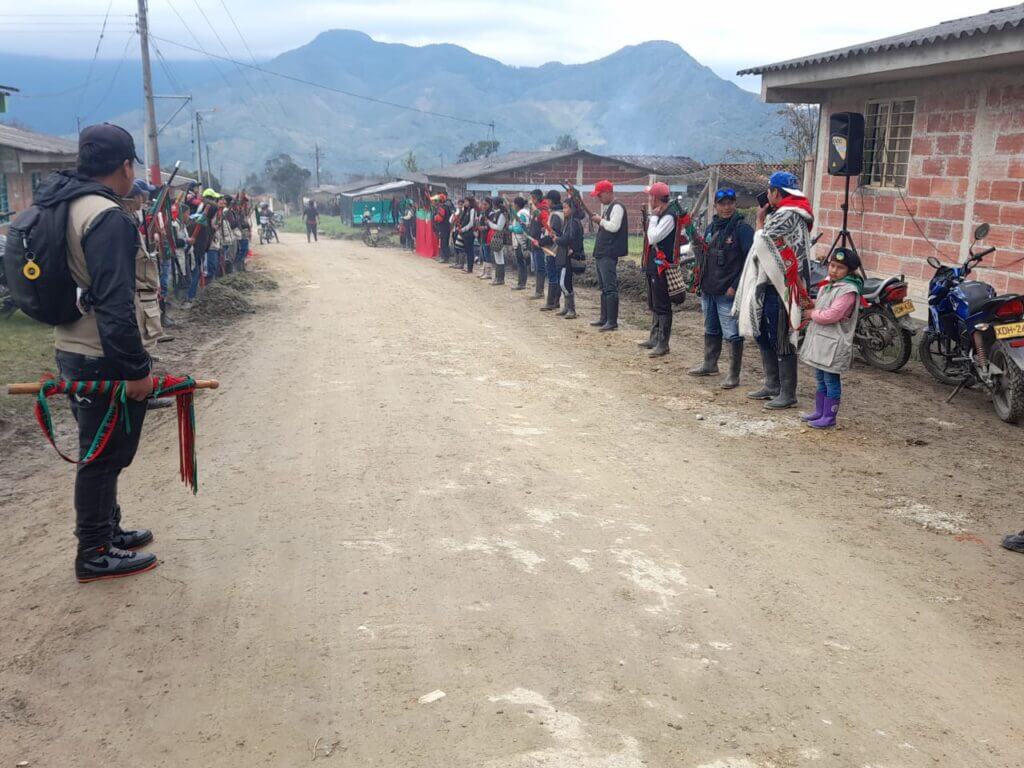 Con homenaje de lucha y resistencia la guardia del territorio Mosoqueño recibió la primera delegación de la guardia indígena de los territorios al sitio de concentración para lo que será el XVl congreso del movimiento indígena del Cauca y CRIC Nacional.