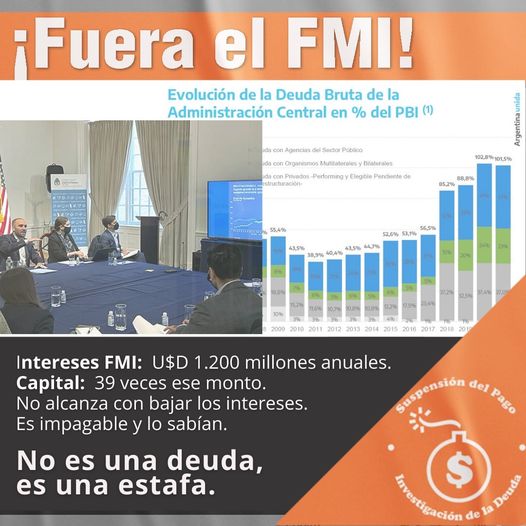 Es hora de unirnos en un solo grito: #FueraElFMI Que suspenden ya los pagos, para investigar, sancionar y repudiar una deuda que no debemos ni los pueblos ni la naturaleza.