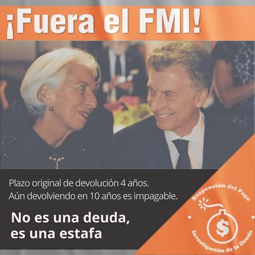Es hora de unirnos en un solo grito: #FueraElFMI Que suspenden ya los pagos, para investigar, sancionar y repudiar una deuda que no debemos ni los pueblos ni la naturaleza.