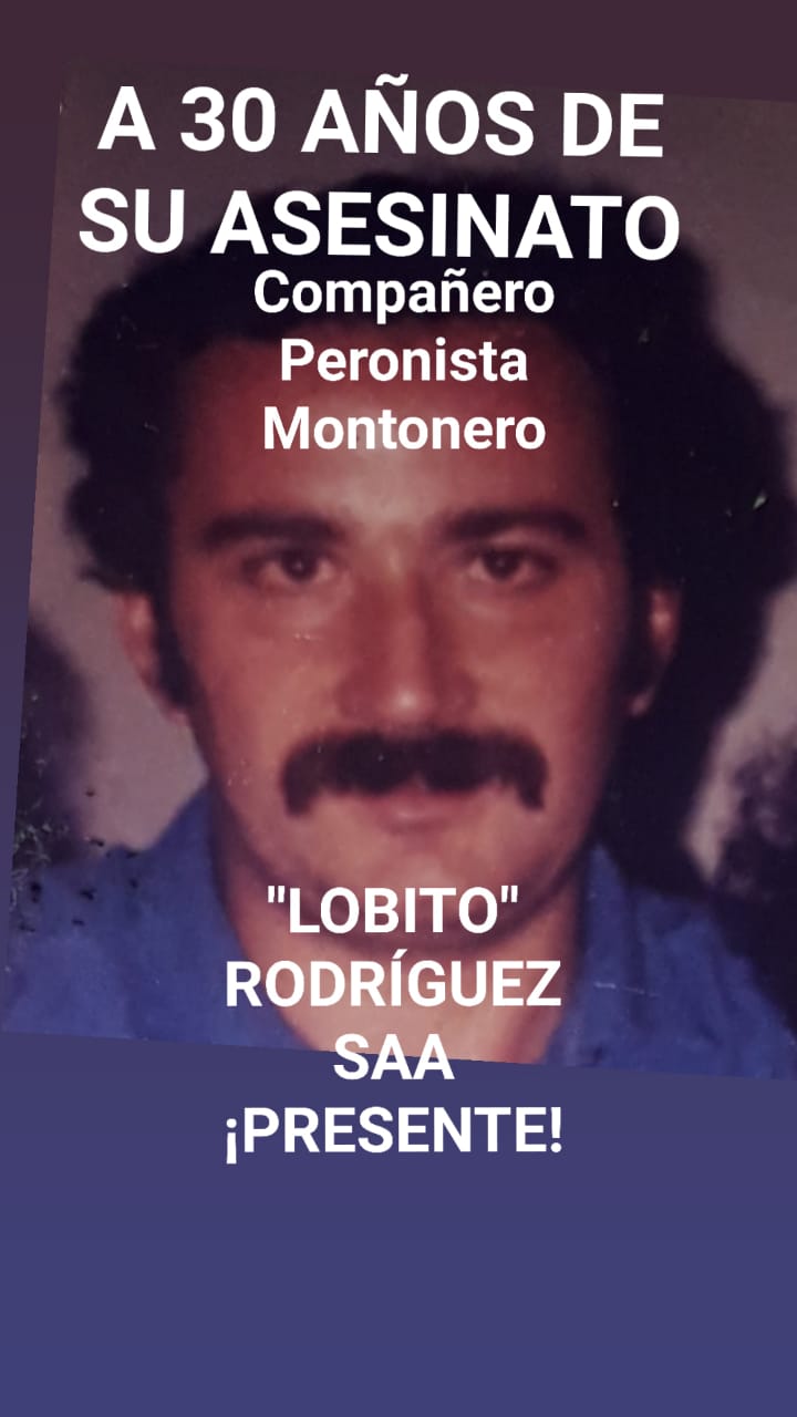 Siempre será “El Lobito Rodríguez Saa”. El 4 de octubre de 1991 caía asesinado, en al esquina de Aguirre y Aráoz, de esta Capital, a pocas cuadras de su casa. “Que robaban por la zona, que eran piratas del asfalto, que iban armados …”: en fin, la “autoridad” no sabía luego como explicar su muerte. Lo real es que fue interceptado por el suboficial Humberto Maldonado que prestaba servicios en el DEPOC, una especie de policía política antiterrorista dependiente de la Federal y muerto sin más. Junto con él estaba Marcelo Langieri que quedó detenido. “El Lobito” estaba re-construyendo las “Unidades Básicas Revolucionarias” con la intención de sacar del letargo al peronismo militante y consecuente con las banderas revolucionarias; para ponerlo de pie, y enfrentar al menemismo traidor y a la socialdemocracia entreguista.