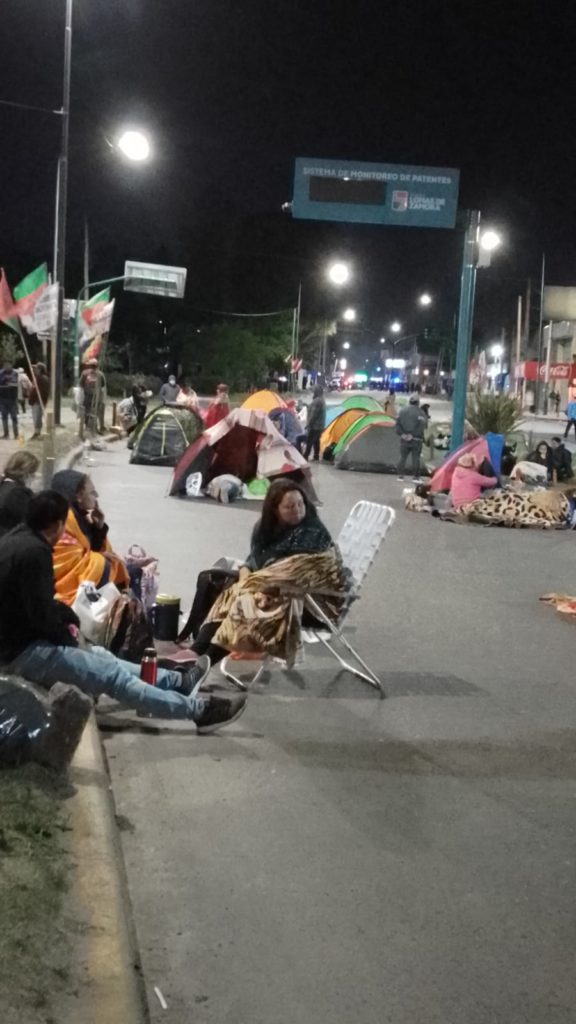 Todo transcurría con bastante calma, hombres y mujeres de los barrios estaban junto a algunas carpas o sentados en sillas, cuando poco después de las 23 horas, la «maldita policía», al servicio siempre de los poderosos, tuvo que hacer de las suyas. Efectivos a pie y en moto, avanzaron sobre los acampados que previendo lo que se venía se había alineado con sus banderas cortando la ruta. Sin que mediara ninguna acción por parte de los vecinos, los uniformados comenzaron a balearlos, arrojarles gases y a tirarles las motos encima, provocando una estampida de la gente por la inusitada violencia policial. Así se vió caer a algunas personas que habían sido rociados con perdigones de goma, tanto en piernas, brazos y hasta en el rostro.