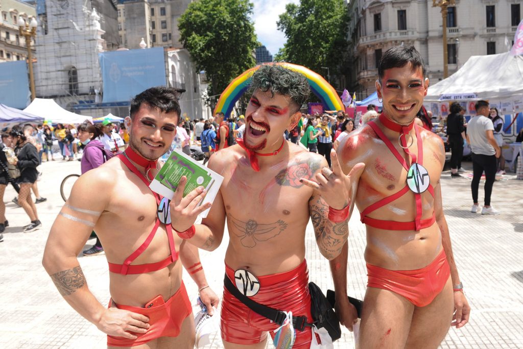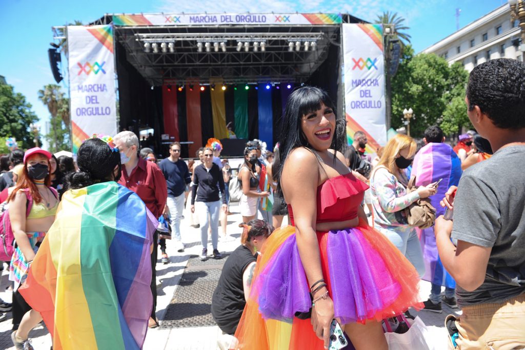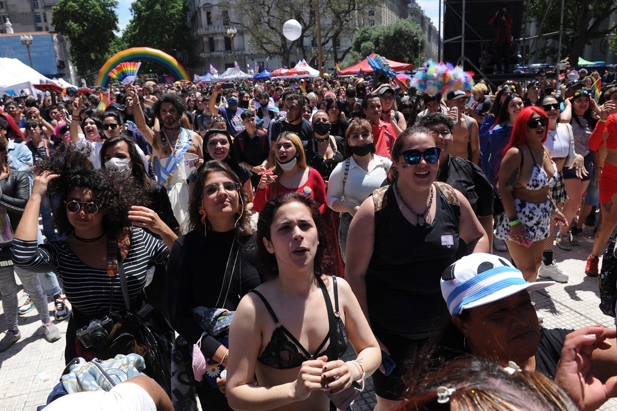 La jornada comenzó a las 11 con la Feria del Orgullo en Plaza de Mayo, desde donde partieron los manifestantes, hasta llegar al acto central frente al Congreso.