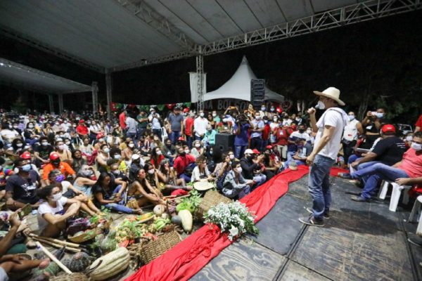 Por la tarde, hubo un acto político en defensa de la Reforma Agraria. En la ocasión, el movimiento fue recibido por los participantes de la mesa que representan las siglas del Partido de los Trabajadores (PT), Partido Comunista de Brasil (PCdoB), Unión Nacional de Estudiantes (UNE), Universidad Federal del Sur de Bahía (UFSB) y Universidad Estatal de Bahía (UNEB).