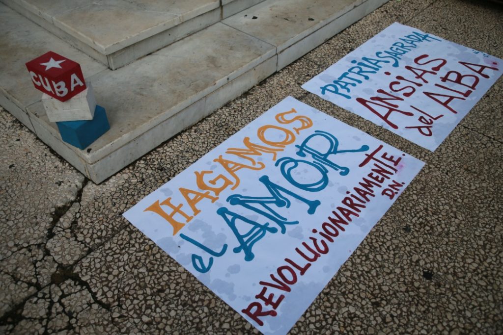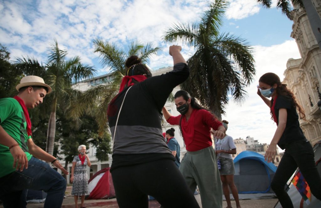 La “Sentada” de Los Pañuelos Rojos contiene en su programa de actividades conciertos de música, debates, lecturas de poesías y performances en apoyo a Cuba y en defensa de los valores de la Revolución.