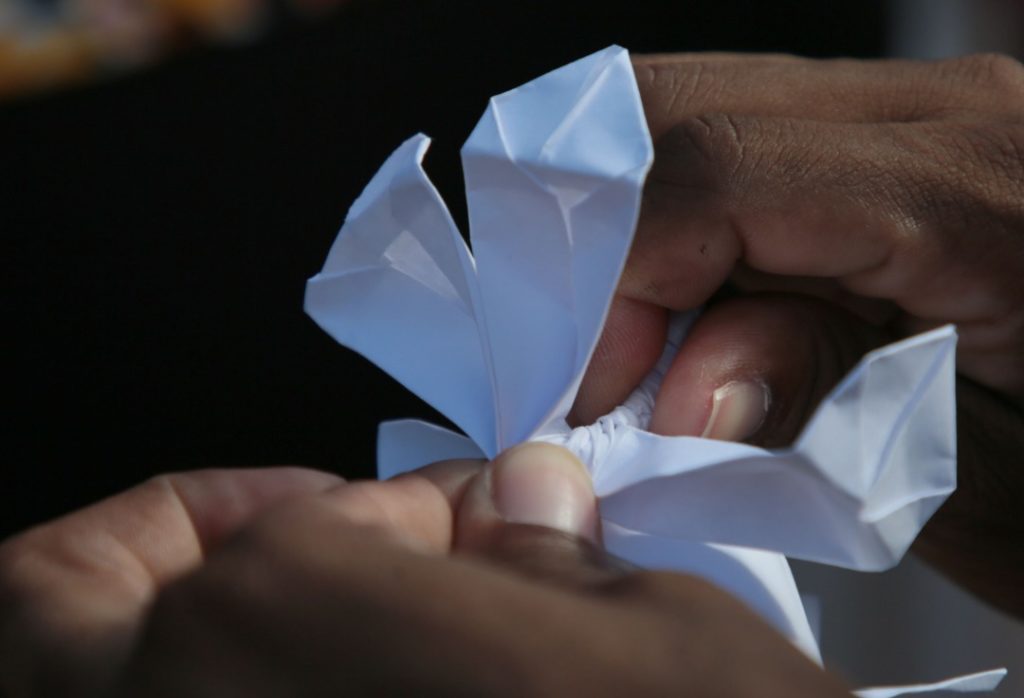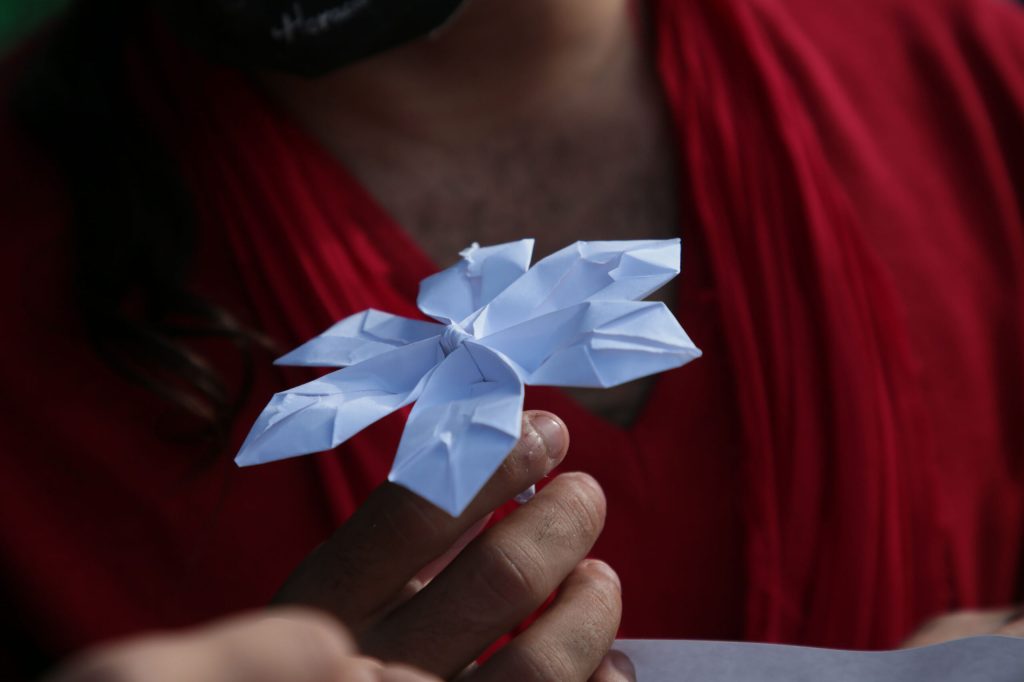 Durante esta mañana confeccionaron flores blancas de papel con personas que se fueron acercando de las calles. Flores en tributo a quienes han fallecido durante la pandemia. Flores por todo aquel que ha librado la batalla contra la Covid, por la ciencia cubana, por quienes lograron que Cuba tenga sus propias vacunas para proteger a toda la población.