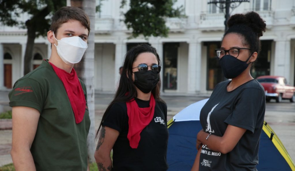 El cielo de La Habana los abrazó en una madrugada húmeda. Amanecieron en el Parque Central junto a José Martí un grupo de jóvenes llenos de sueños, vinieron de diversas provincias con mochilas de cargas renovadas para hacer por 48 horas la “Sentada de los Pañuelos Rojos”.