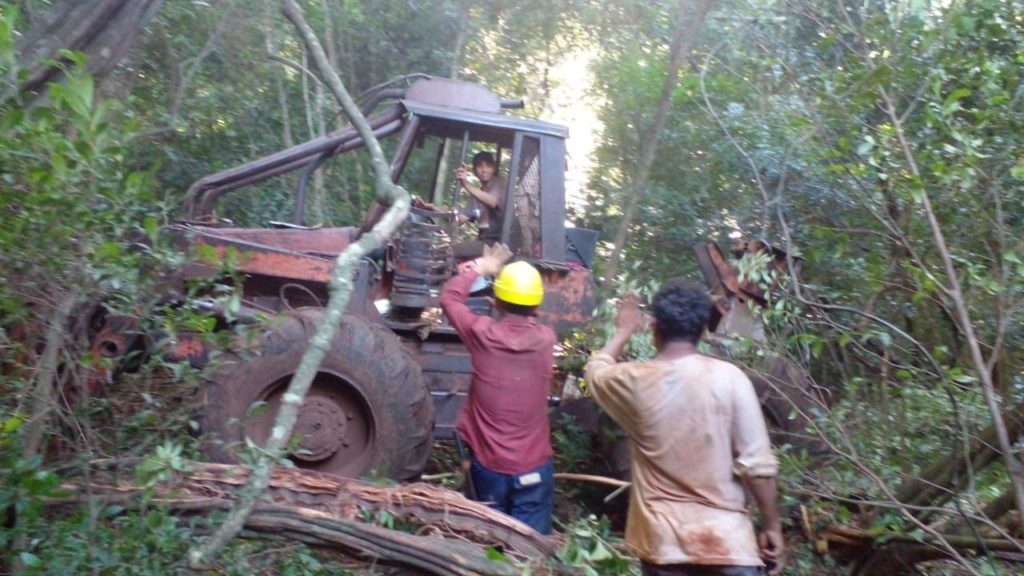 Entran con maquinas topadoras y motosierras en el monte, pudieron entrar de este modo, con el consentimiento del ministerio de ecología, del ministro Mario Vialey, dando las órdenes para seguir talando.