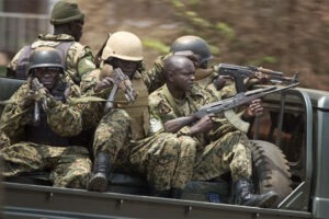 Las tropas de infantería ugandesas llegan en carros blindados con escolta del Ejército de la RDC, cuyo gobierno autorizó el bombardeo con artillería y aviación antier contra bases en su territorio de las FDA, grupo armado leal a Estados Islámico notorio por sus masacres de civiles en las provincias congolesas de Kivu Norte e Ituri.