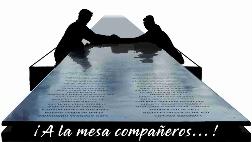 Esta mesa representa a la familia, el intercambio colectivo de voces, democracia y unión de una cultura uruguaya con el objetivo de poder articular derechos humanos con la sociedad y repensar sobre la historia de la época.