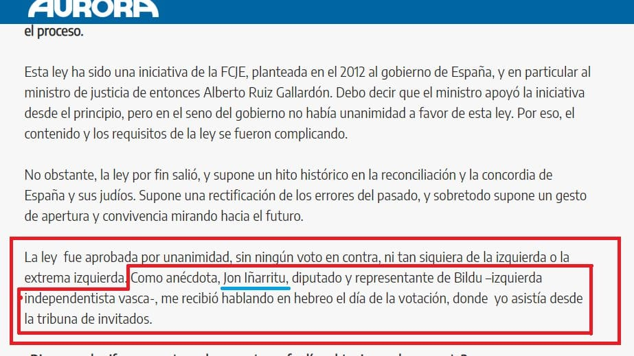 En calidad de diputado de EH Bildu, Iñarritu recibió cordialmente y «hablando en hebreo» en el parlamento a Isaac Querub, entonces presidente de la Federación de Comunidades Judías de España, una organización que mantiene estrechos vínculos con el Estado de Israel4. En la entrevista mencionada anteriormente en la Radio Nacional de Israel5, donde Iñarritu conversó sobre el proceso de aprobación de la ley de retorno de los judíos sefardíes al Estado español, el diputado pidió el reonocimiento para Querub por impulsar la ley que aprobó otorgar pasaportes a quienes lograran demostrar que son descendientes de los judíos sefardíes expulsados durante la Inquisición. El pasado 18 de junio, en pleno genocidio sobre la Franja de Gaza, el diario La Nueva España publicaba una entrevista en la que Querub declaraba: «Algún día agradecerán lo que Israel hace por la humanidad».