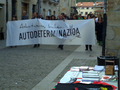 Mas de un centenar de personas han recorido esta tarde las calles de Larrabetzu (Bizkaia) bajo el lema: «Askatasuna, bakea… Autodeterminazioa».