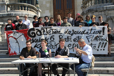 En rueda de prensa en Bilbo, los compañeros de los encausados han anunciado que este miércoles a partir de las diez de la mañana, realizarán una marcha desde el Ayuntamiento hasta los juzgados de Buenos Aires nº 6, para acompañar a los compañeros encausados y que se concentrarán hasta que acabe la sesión.