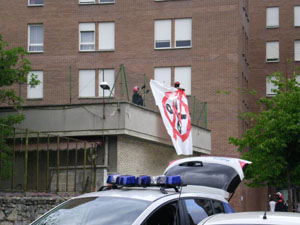 Varias dotaciones de la policía foral se presentaron en Burlataenea y entraron destrozando algunas puertas, a pesar de que se encontraban abiertas y de que los ocupantes estaban desalojando el edificio pacíficamente, sin resistencia alguna. Cuando varios de ellos solicitaron la orden de registro, la respuesta de uno de los policías fue la de “cómeme la poya” procediendo posteriormente a identificar a quienes les habían solicitado la orden judicial, que finalmente se negaron a mostrar.