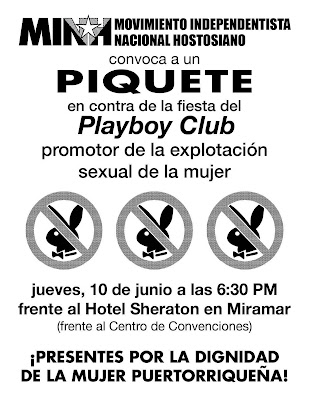 La compañía Playboy ha hecho su fortuna a expensas de la comercialización del cuerpo de las mujeres y de su sexualidad, en una sociedad donde se combinan, el sistema patriarcal y el modelo económico capitalista y cuyo nefasto resultado es que la imagen de la mujer sea una de las fuentes de mayor lucro mercantil para las grandes empresas y transnacionales. Es importante que hagamos sentir nuestro descontento ante esta recurrente explotación y trato deshumanizante hacia las mujeres.