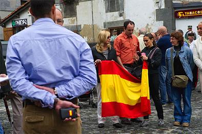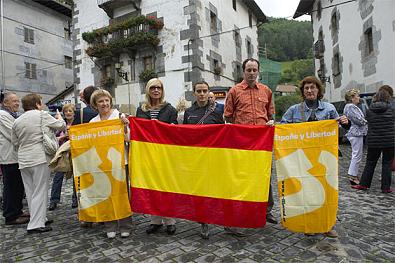 Una cien personas han llegado desde España en autobuses esta mañana al pueblo y se han concnetrado en la plaza del mismo sacando una bandera española (debe ser la primera que se ve allá en mucho tiempo, sin contar la del cuartel de la Guardia Civil) y una pancarta del grupo fascistoide «España y Libertad». Tan solo han contado con la presencia además de ell@s de un concejal de UPN. Y la protección de la benemerita.