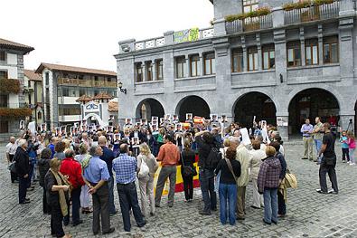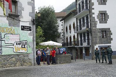 Lo que no sabemos es de quienes les protegian, porque las personas que allí viven, han seguido con sus respectivas rondas de poteo y pintxos sin hacerles el menor caso. El pueblo ha visto, como llegaban estas personas, montaban su show mediatíco y se largaban por donde han llegado. Nadie les ha dicho nada ni les han mirado. Ni siquiera las vacas de los alrededores se han molestado en levantar la cabeza, continuando con su festin de hierba.