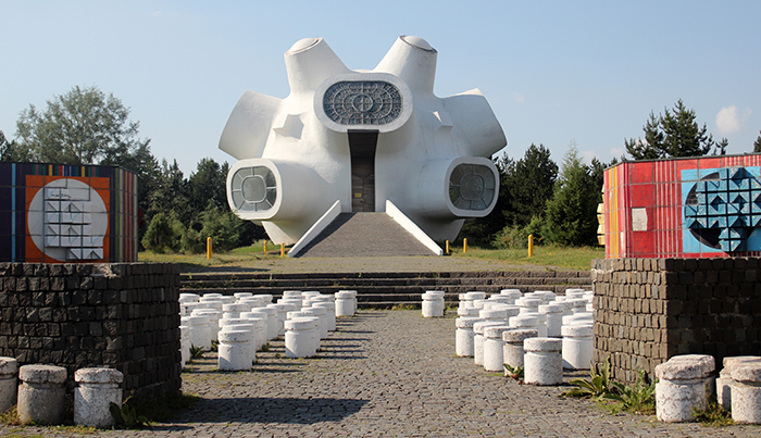 El monumento de Ilinden, a Kruševo, conmemora la revuelta de 1903. Diseñado por Jordan y Iskra Grabul, es un ejemplo de arquitectura brutalista yugoslava. /Imagen: Miguel Fernández Ibáñez