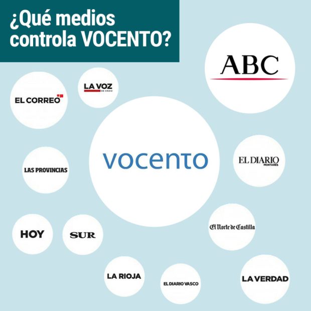 Mucho se ha habla­do en los últi­mos meses del inte­rés del Ban­co San­tan­der en una posi­ble fusión de Vocen­to y PRISA, cuya his­to­ria tra­ta­mos en el ante­rior capí­tu­lo. La suma de sus nego­cios supon­dría una for­tu­na que la enti­dad ban­ca­ria esti­ma en más de 24 millo­nes de euros. Y es que la edi­to­ra de ABC es uno de los prin­ci­pa­les gru­pos mediá­ti­cos de nues­tro país. Su estra­te­gia se ha basa­do en la ato­mi­za­ción y la con­cen­tra­ción: en sus manos están más de 14 perió­di­cos de carác­ter regio­nal (como El Correo, El Dia­rio Vas­co, El Comer­cio o el Dia­rio de Cas­ti­lla). Vocen­to, ade­más, man­tie­ne aso­cia­cio­nes estra­té­gi­cas con radios como la COPE, Cade­na 100 y Radio María, y man­tie­ne víncu­los, más o menos direc­tos, con Tele­cin­co e Intereconomía.