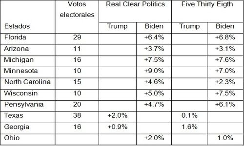 Esos estados, para los analistas del sitio, pueden resultar determinantes y en ellos lleva ventaja, de manera general, Joe Biden.
