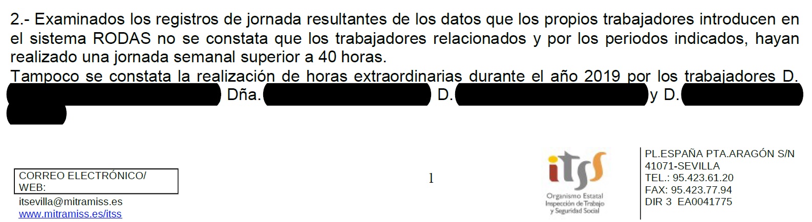 Reiteramos que en manos de la Inspección de Trabajo están las pruebas de estas vulneraciones porque nuestra Sección Sindical las hizo llegar junto con la denuncia. Pues bien, hace un par de semanas, o lo que es lo mismo, prácticamente 10 meses después de haber interpuesto CSC la denuncia, la Inspección de Trabajo de Sevilla nos remite un oficio donde falla en base a lo siguiente: