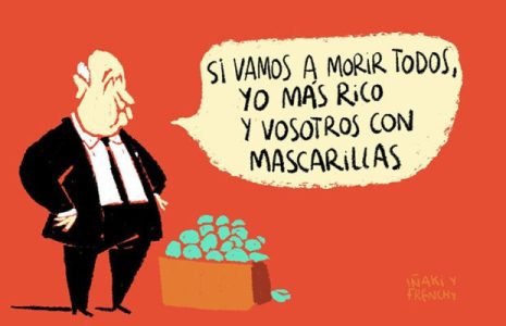 Encerrarse, apartarse de las amistades, suspender el trabajo, dejar de festejar, es algo que habrá que hacer, lo estamos haciendo, pero con disciplina militante y perspectiva revolucionaria. Sin dejar un ardite a la tristeza, al miedo, a la desesperanza, al conformismo social. Cada hora de encierro, mientras ordenamos estanterías o limpiamos alacenas, debe servir para soñar cambios; para trasgredir barreras; para pergeñar futuras insurgencias que pongan a las personas y a los pueblos libres, no a los bancos, en el centro del planeta. La mascarilla no es un bozal para cimarrones, no tapa la voz ni las ideas. Es, debe ser, un acicate más. Cuando nos la quitemos habrá que seguir conspirando, más fuerte aún, contra la tiranía.
