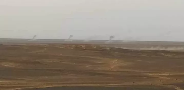 La artillería del ejército saharaui ataca posiciones marroquíes detrás del muro de arena en el Sáhara Occidental