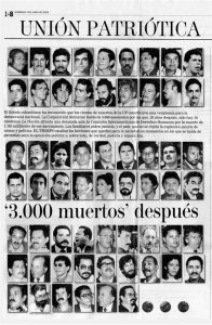 Más de 5.000 dirigentes y militantes de la UP fueron asesinados por una banda de matarifes conformada por el presidente de la República, agentes del Mossad, el ejército y los paramilitares. Ellos descabezaron, utilizando al Estado, a toda una generación de revolucionarios. El general Zamudio, rechazando las razonables preocupaciones del Consejero de Paz Carlos Ossa, le respondió afirmando que, “a ese ritmo no van a acabar nunca». Y mataron más que Pinochet, el dictador chileno que mató a 3.000. Por esos muertos, por nuestros muertos de la UP, pedimos justicia.