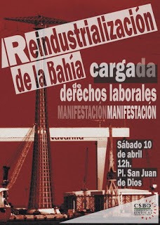 La Confluencia Sindical Bahia de Cádiz convoca una manifestación el próximo 10 de Abril. Bajo el lema “Reindustrializacion de la Bahía” la CSBC convoca a sindicatos, organizaciones políticas, colectivos ciudadanos y sociedad civil de la bahía a salir a las calles a exigir carga de trabajo para la zona y derechos laborales para los trabajadores/as.