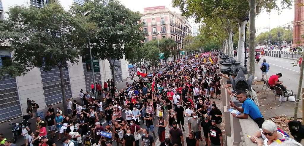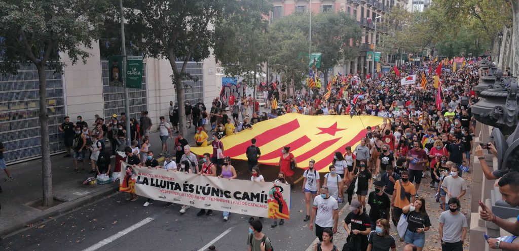 Covid-19 , el independentismo ha vuelto a llenar las calles de Barcelona en la que ha sido la concentración más multitudinaria desde el acto del Consejo por la República a Perpiñán, celebrada antes de la crisis sanitaria. La Guardia Urbana ha rebajado la cifra a 108.000 asistentes.