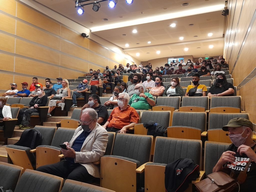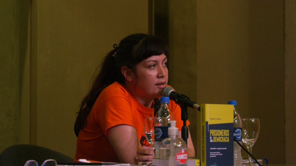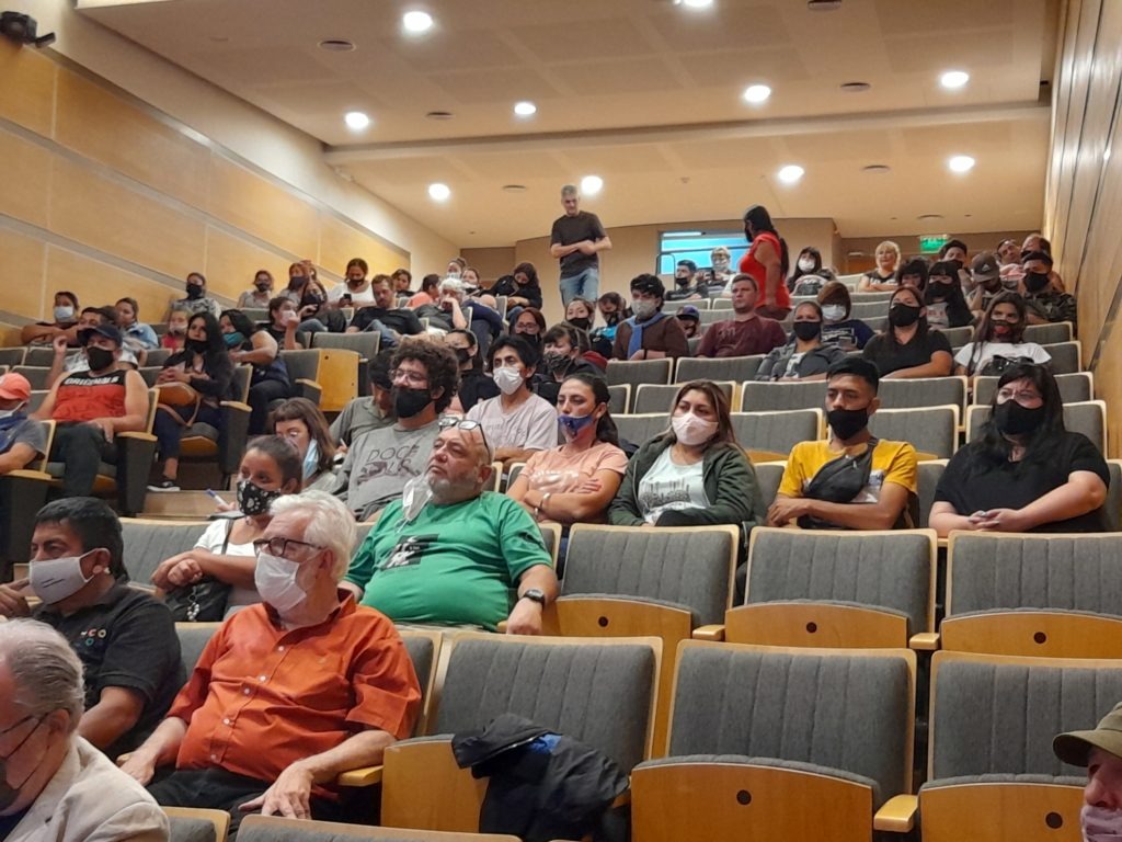 La sala estaba con el aforo casi al completo, con la presencia de militantes barriales de la OLP-Resistir y Luchar, de la cual Perdía es el actual referente, y también asistieron las mujeres y disidencias de la organización Las Domitilas y militantes de otras organizaciones sociales y políticas. También se hizo presente el secretario general de ATE, Hugo “Cachorro” Godoy, quien saludó a Perdía y a quienes asistieron al acto.