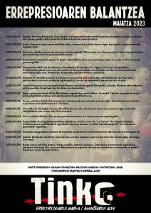 2023/05/05 Gasteizeko GKS eta Etxebizitza Sindikatua Plaza Berrian egiten ari ziren kanpaldian, Ertzaintzak plaza osoa itxi eta indarrez kanporatzeko eta milaka euroko isunak ezartzeko mehatxua egin die. Ondorioz, kanpaldia bertan behera utzi dute.